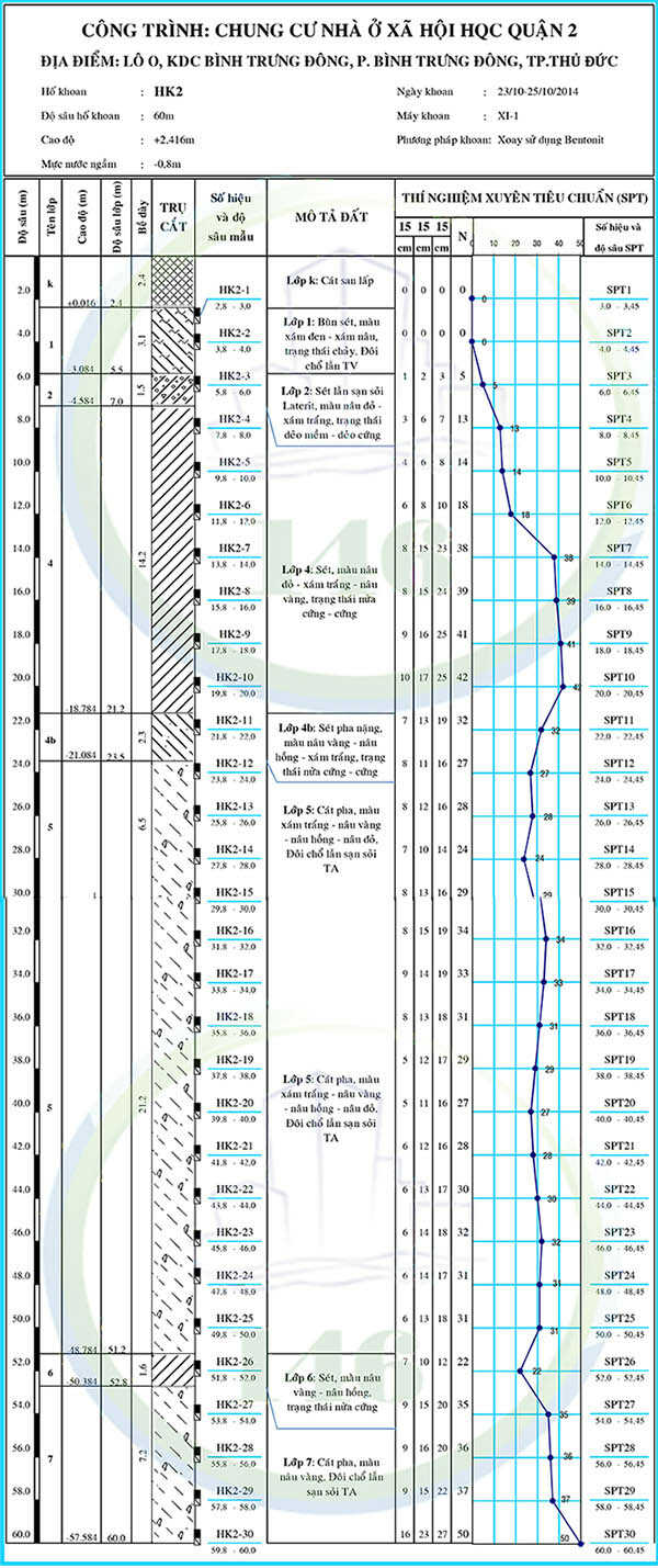 Lớp 2    : Sét lẫn sạn sỏi Laterit, màu nâu đỏ – xám trắng, trạng thái dẻo mềm – dẻo cứng.