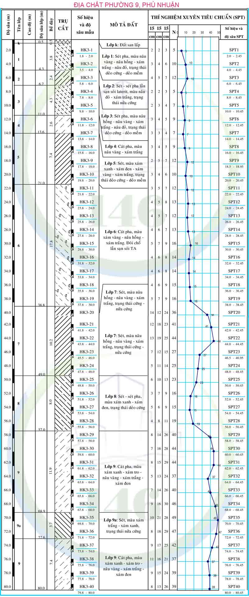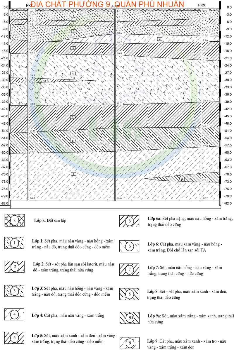 Lớp 3 : Sét pha, màu nâu hồng – nâu vàng – xám trắng – nâu đỏ, trạng thái dẻo cứng – dẻo mềm.